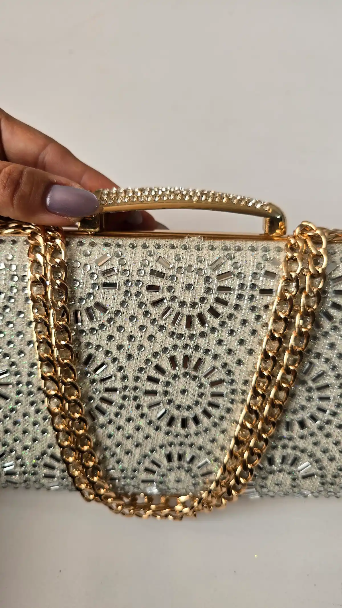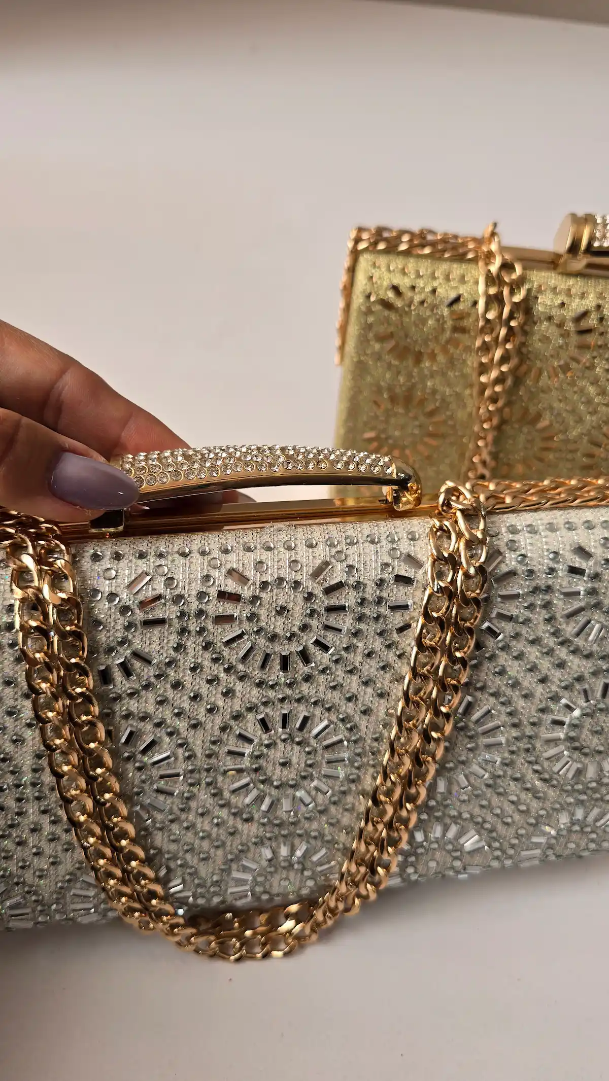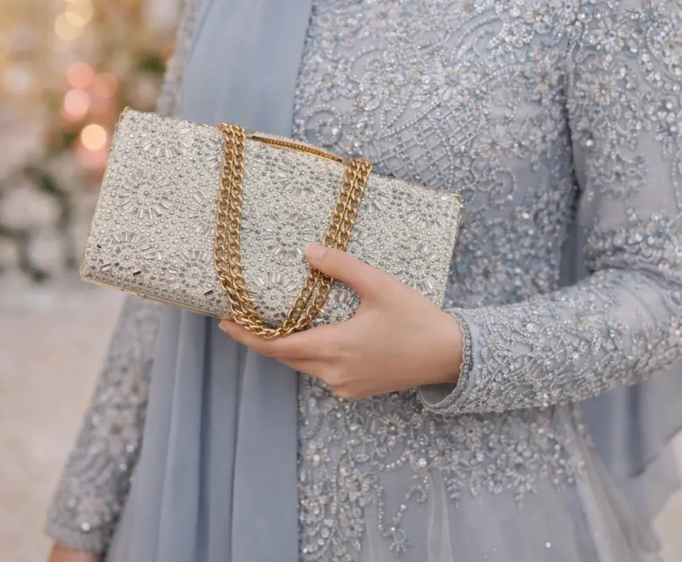 برای لباسهای پرجزئیات، کیف نگین دار ظریفتر انتخاب کنید
